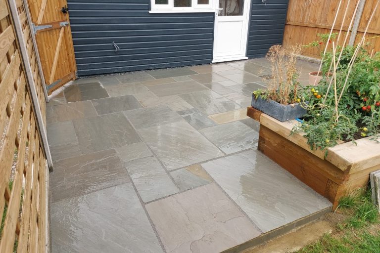 We provide not only a high-quality patio laying service with options for porcelain tiling, Indian sandstone, limestone, Yorkstone and concrete slabbing but also options for decorative walling, wooden fencing, new lawns, roll-on turf, artificial grass and more.